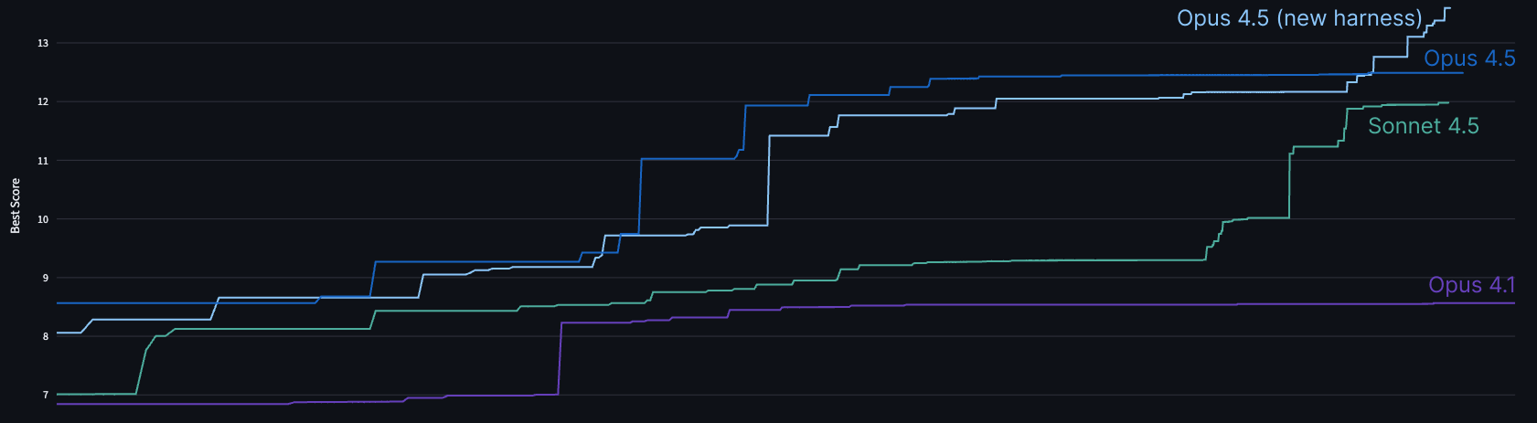 - 1363 dövr: Claude Opus 4.5, təkmilləşdirilmiş test-time compute harness-ində uzun saatlardan sonra